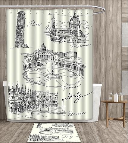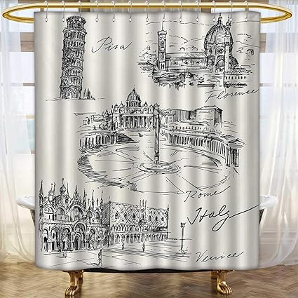 Sketchy Shower Curtain Travel The World Themed Historical Italian