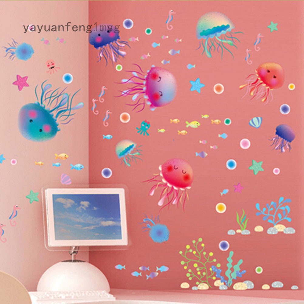 Art Cute Sea Wall Sticker Cartoon Jellyfish Mural Kids Baby