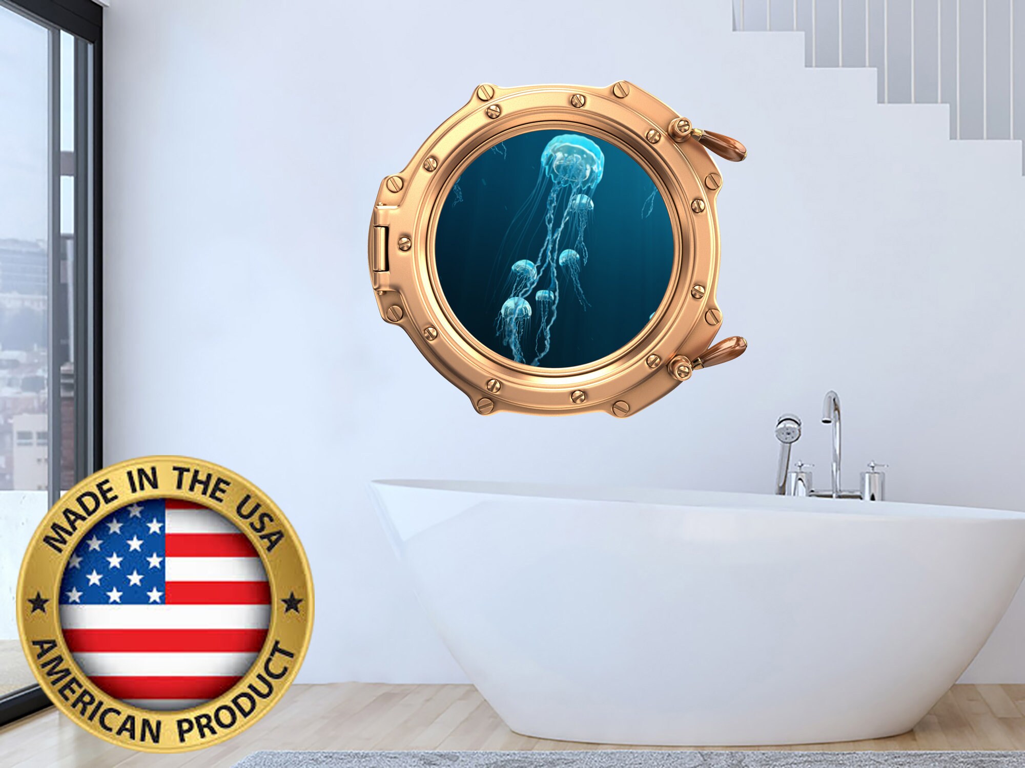Jellyfish Porthole Window 3d Jellyfish Wall Decal Nautical Etsy