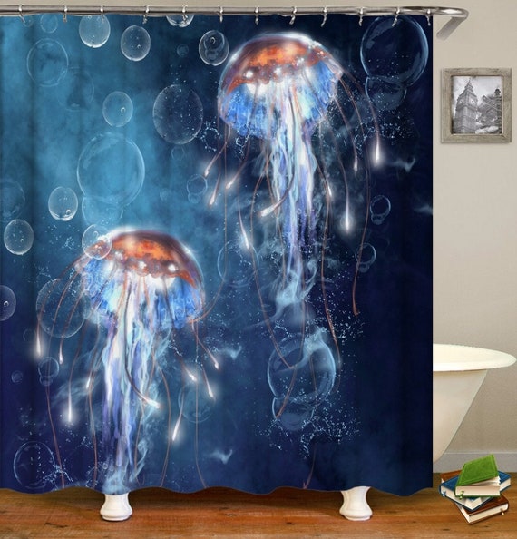 Jellyfish Shower Curtain Jellyfish Bathroom Decor Bath Etsy