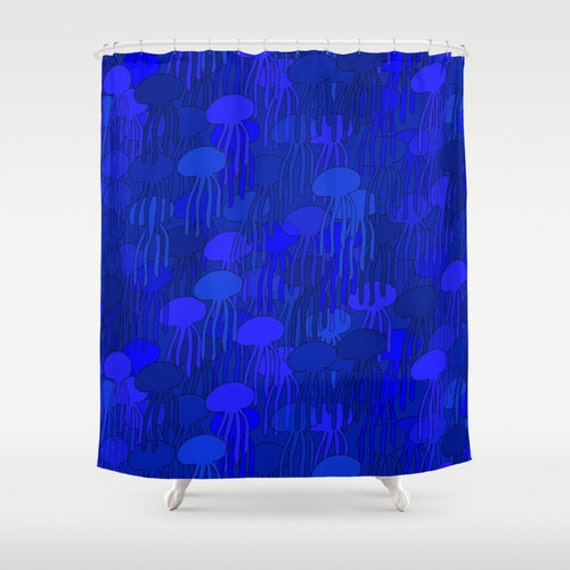 Blue Shower Curtain Jellyfish Decor Ocean Bathroom Decor Etsy