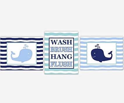 Navy blue green nautical nursery wall art kids room decor baby nursery art bathroom art set of three prints 8x10 unframed boat whale sea fish brush wash take a bath. Try prime all. See more ideas about college bathroom bathroom kids and whale bathroom.