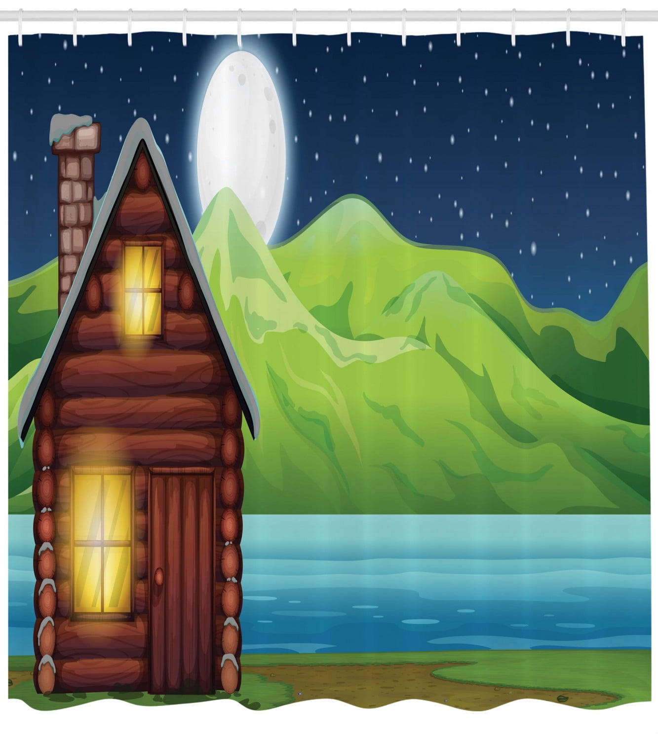 Log Cabin Shower Curtain Winter Theme Image Of A Rustic Cabin And