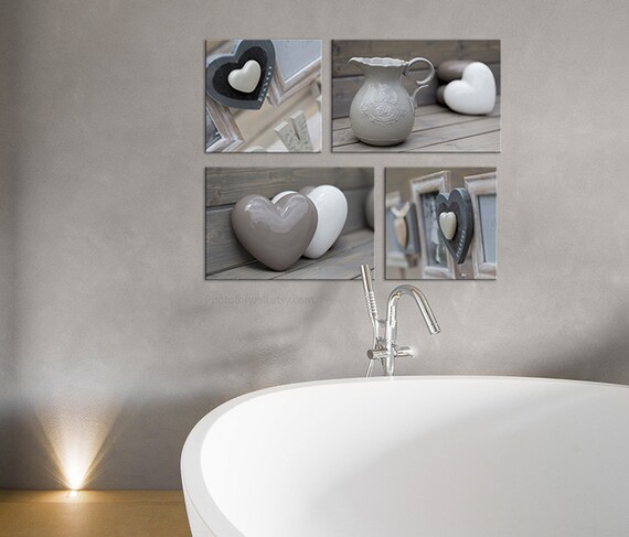 Bathroom Decor In Soft Grey With A Set Of 4 Prints Love Etsy