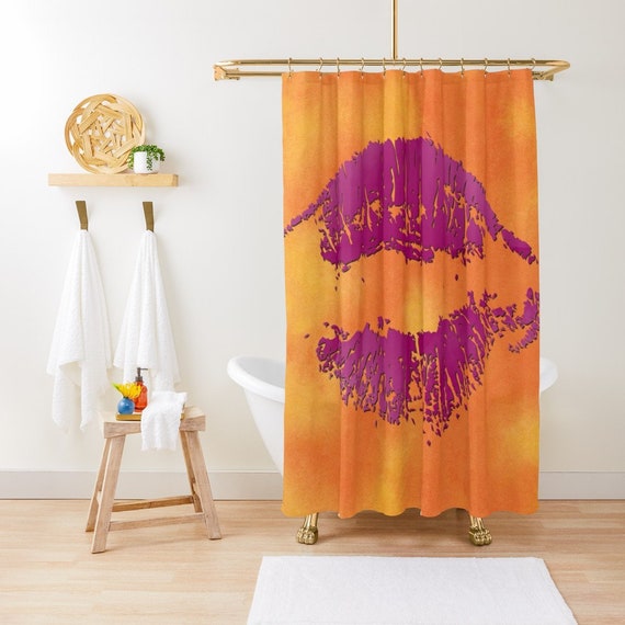 Kiss Shower Curtain Bathroom Decor Love Bath Curtain Etsy