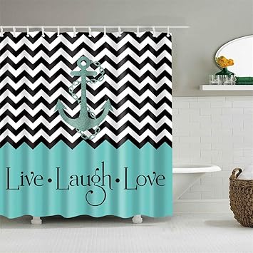 Amazon Com Shower Curtain Set With Hooks Nautical Anchor Chevron