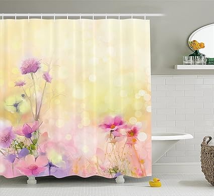 Watercolor Flower Home Decor Shower Curtain Vintage Soft Feminine