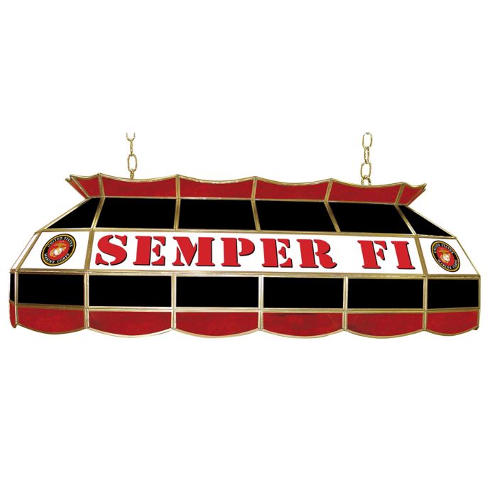 United States Marine Corps 3 Light Stained Glass Billiard Lamp