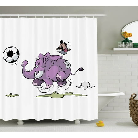 Elephants Decor Shower Curtain Set Elephant Is Playing Soccer
